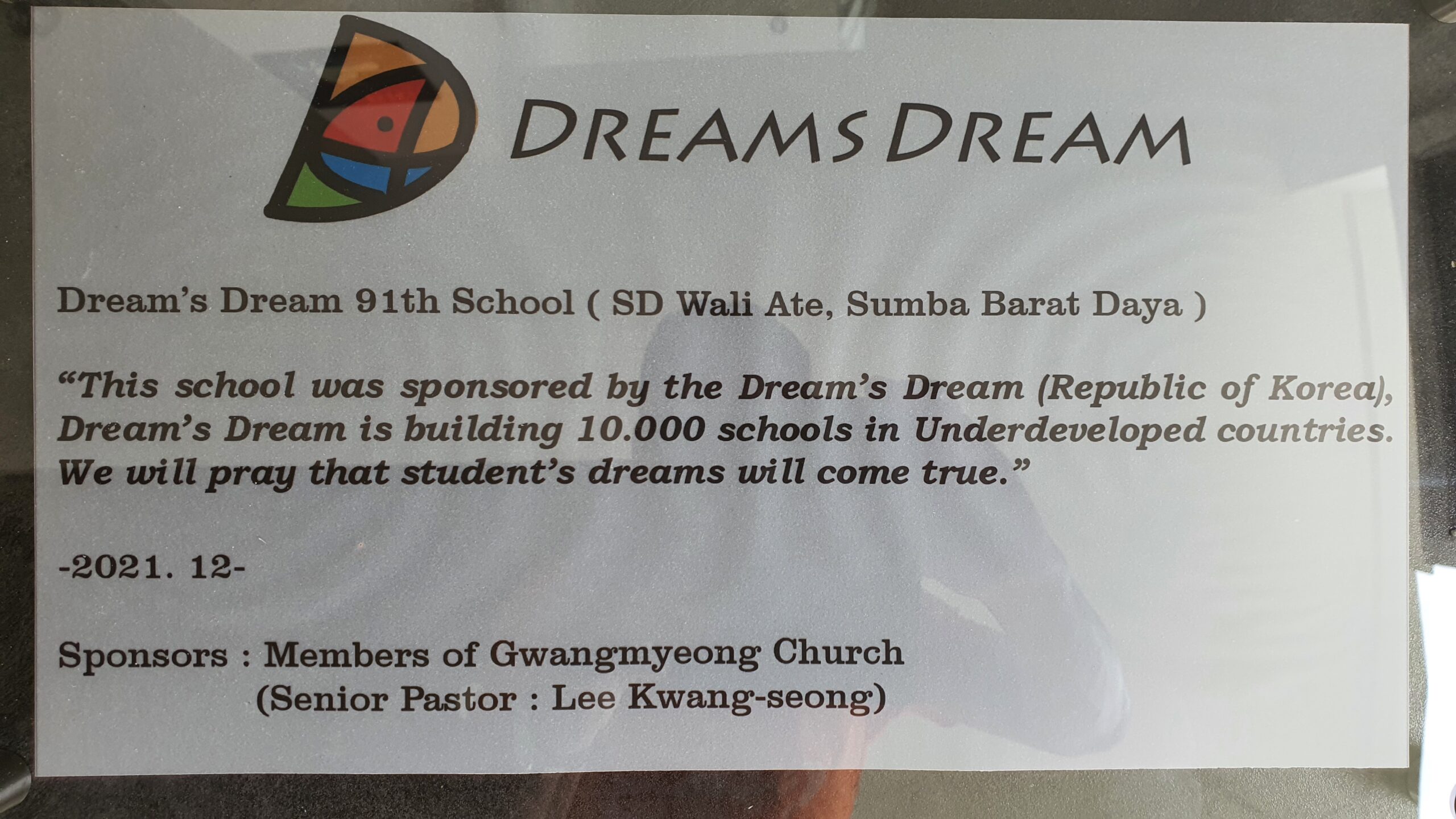 드림스드림 91호 학교인도네시아 / 글쓴이 드림스드림 Dreamsdrdeam 1. 프로젝트 제목: 인도네시아 서숨바 SDTK PNIEL 초등학교2. 프로젝트 규모: 한화 2,000만원3. 학교완공: 2021.124.모금기간: 2019.11.25~2019.12.235. 후원자: 광명교회 성도들(담임목사 이광성)6. 학교결산서: https://dreamsdream.org/wp-content/uploads/2023/11/account-91.pdf